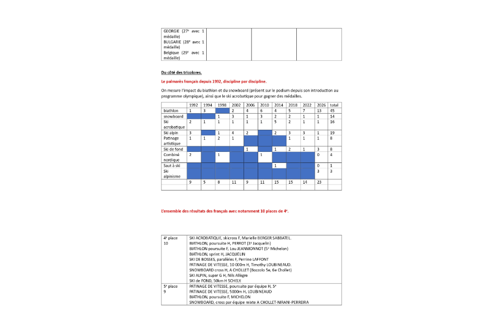 Ce doublé (il y en a eu de nombreux sur ces Jeux) permet au biathlon de remporter 13 médailles, soit 56% des médailles françaises !!!